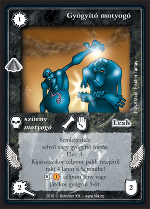 Kiadás: Zarknod visszatér, Alappakli, 10. kiadás Gyakoriság: nem gyakori Lapszín (isten): Leah Típus: szörny Altípus: motyogó Szöveg: Semlegesítés: sebző vagy gyógyító forrás. Élet: 1. Kijátszásakor célpont pakli tetejéről rakj 4 lapot a Semmibe! (K), (1): Célpont lény vagy játékos gyógyul 5-öt. Illusztráció: Fischer Tamás