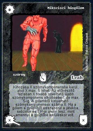 (AK9) A Miksziszi húsgólemet le lehet rakni 0 szörnykomponensért is, de ekkor azonnal a gyűjtőbe kerül. Ha van egy Leah oltárod, akkor életben marad, a te körödben az oltár, az ellenfél körében a védekezési bónusz miatt.